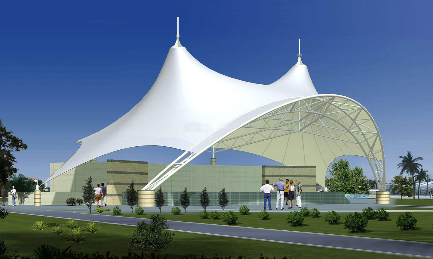 1、舞臺膜結構能夠看作是一種人工的自適應系統,同許多天然有機體一樣,可根據需求改動自身的形式。