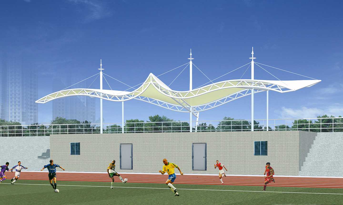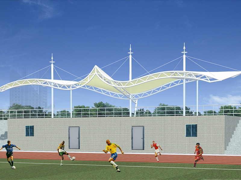 2、體育膜結構看臺的外觀設計一向都是露天的,所以在設計的時候我們需要注意它的承重力,因為一般都是單側建造或者環繞建造,必須有無數個支撐點才能讓整個頂子具有強抗風、抗震的功能 體育場看臺一般都是高大上的感覺,外觀別具特色,實用性也不錯。同時這種看臺在夏季比賽的時候,觀眾特別希望可以坐在遮陽效果好的一面,那么我們就需要把這些因素考慮進去。盡量讓設計大面積的有遮陽效果,最后在膜結構裁剪的時候要量好尺寸,這樣每塊材料才能很好的焊接成功。做到這些,一個完美又實用的體育場看臺就會很快展現在眼前了。