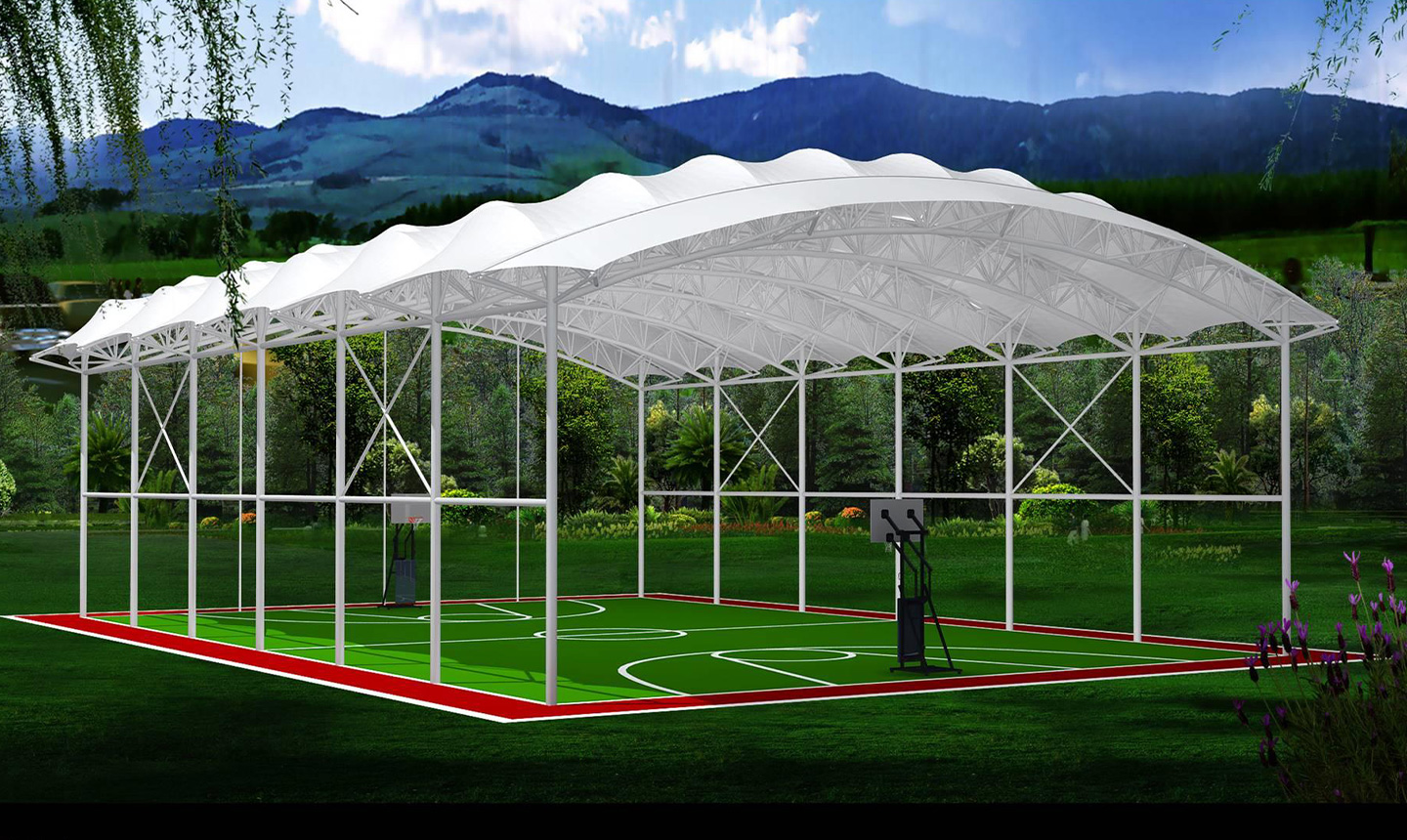 一、對于場地要求低,基本上所有球場地都可以做膜結構頂棚,相比混凝土結構的風雨球館,施工周期短,造價低。
