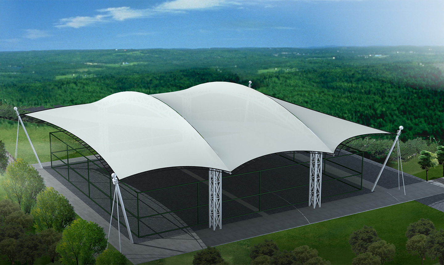 一、對于場地要求低,基本上所有球場地都可以做膜結(jié)構(gòu)頂棚,相比混凝土結(jié)構(gòu)的風(fēng)雨球館,施工周期短,造價(jià)低。