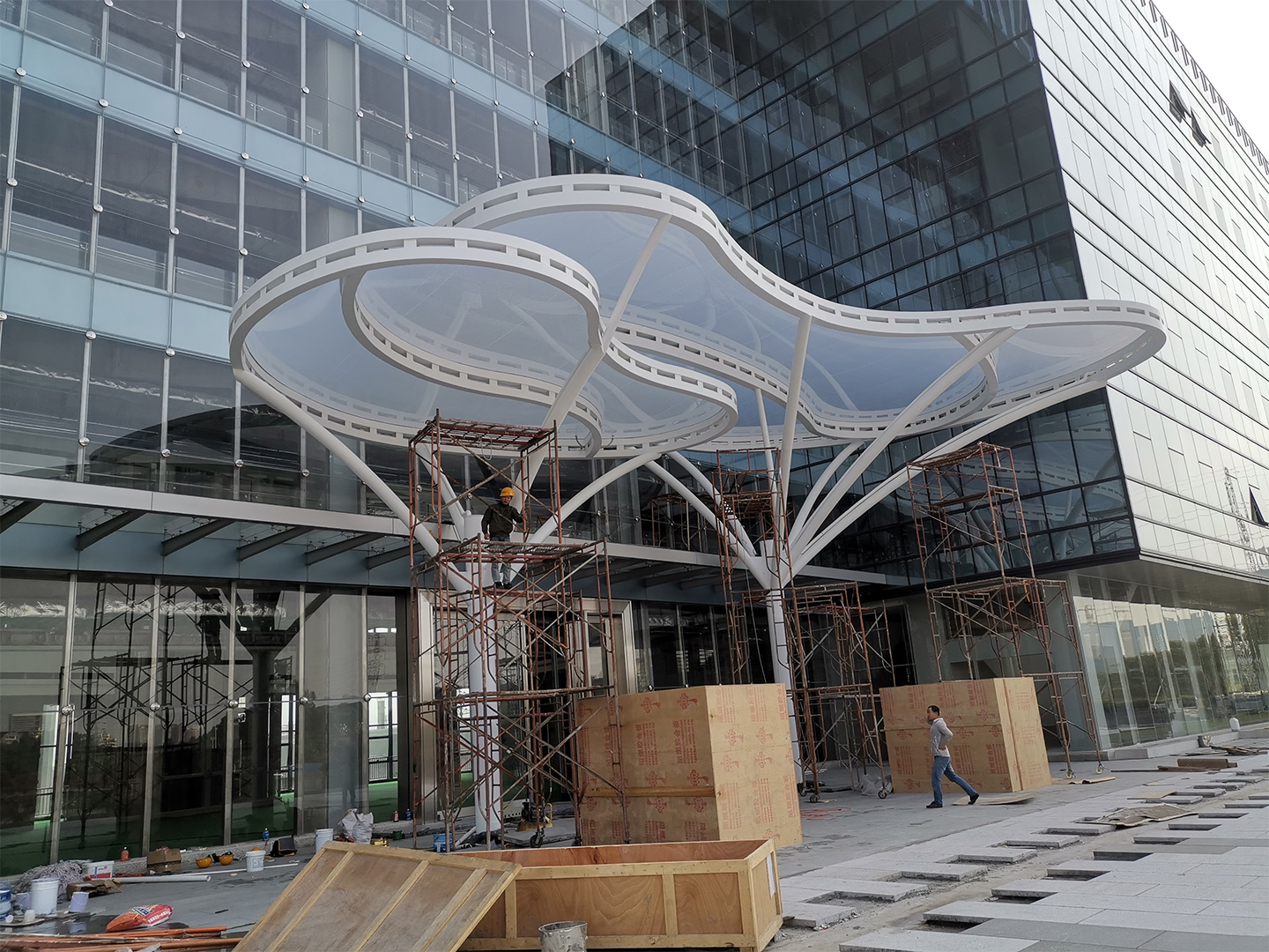 在生產制造方面,為了保證膜結構安裝質量和使用年限,遠信膜結構工程公司采用了現代化的生產車間,公司擁有完整的專業膜材檢測設備、自動裁剪設備、大型軌道行走式PTFE及PVDF熱合設備。同時,公司擁有豐富的膜結構計算分析、設計與施工經驗,集設計、制作、安裝為一體。