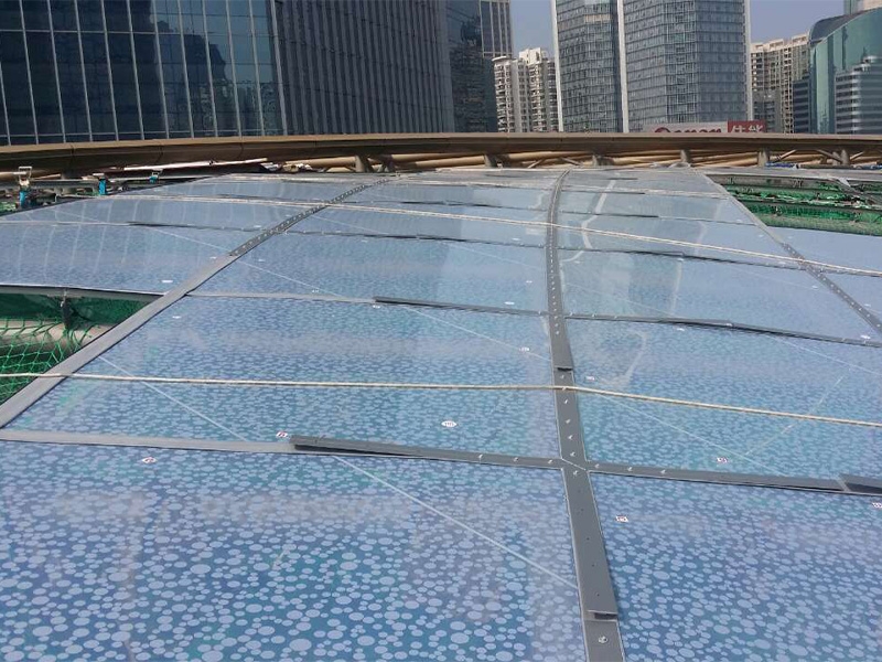 (3)ETFE 膜的透光率可高達95%。該材料不阻擋紫外線等光的透射,以保證建筑內(nèi)部自然光線。通過表面印刷,該材料的半透明度可進一步降低到50%;
