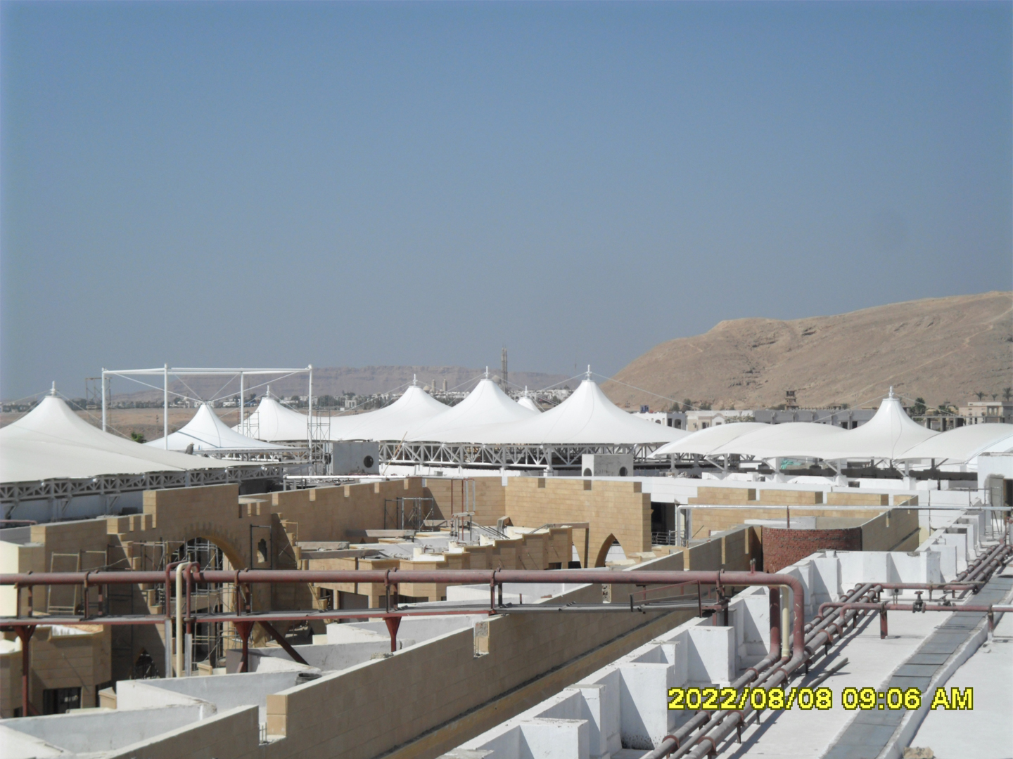PVDF膜結構材料是由膜結構聚脂纖維加PVDF涂層而成, 更高級的PVDF膜結構材料涂有二氧化鈦,材料自潔性極高。 PVDF膜結構材料具有光觸媒的有機物分機能(氧化分解),對去除臟污有顯著的效果。