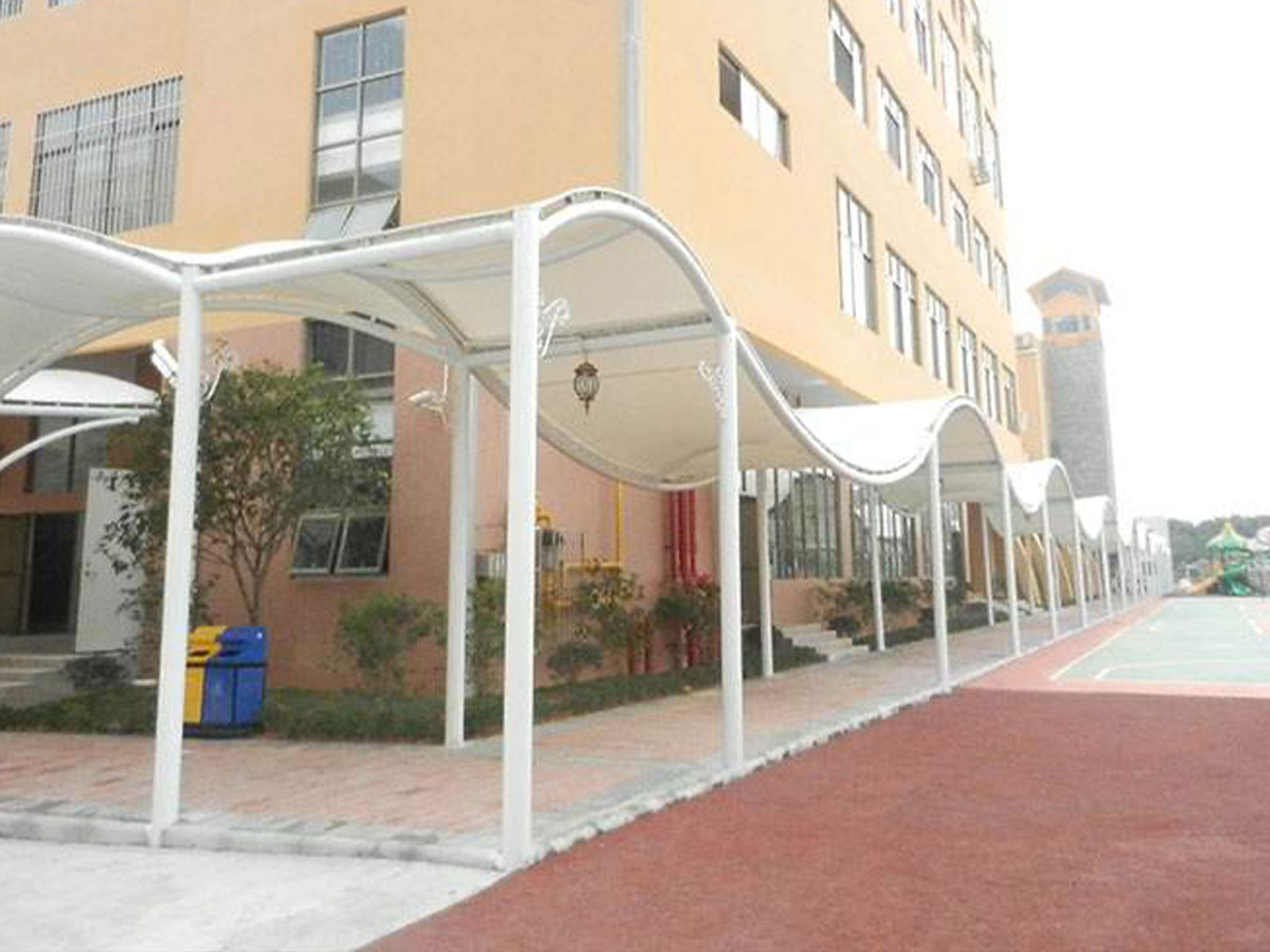 PVDF膜結(jié)構(gòu)材料是由膜結(jié)構(gòu)聚脂纖維加PVDF涂層而成, 更高級(jí)的PVDF膜結(jié)構(gòu)材料涂有二氧化鈦,材料自潔性極高。 PVDF膜結(jié)構(gòu)材料具有光觸媒的有機(jī)物分機(jī)能(氧化分解),對(duì)去除臟污有顯著的效果。