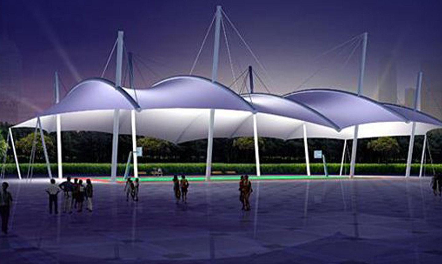 膜結(jié)構(gòu)由于其材料重量輕、支撐方式靈活的特點(diǎn)使其形狀變化多端,使設(shè)計(jì)者能夠充分發(fā)揮空間想象。大部分膜結(jié)構(gòu)工程的造型是非常活潑漂亮的,膜結(jié)構(gòu)工程不但打破了傳統(tǒng)建筑形式的沉悶,而且非常具有張力和雕塑感,能展現(xiàn)建筑形式的現(xiàn)代氣息,與傳統(tǒng)建筑的多線造型相比,膜結(jié)構(gòu)工程建筑以其優(yōu)美的曲線造型吸引人,與周邊建筑相輔相成的同時(shí)也讓人眼前一亮。特別是大型地標(biāo)利用奇特的膜結(jié)構(gòu)造型營(yíng)造夢(mèng)幻般的夜間景觀效果,增加其認(rèn)知度和商業(yè)效果。