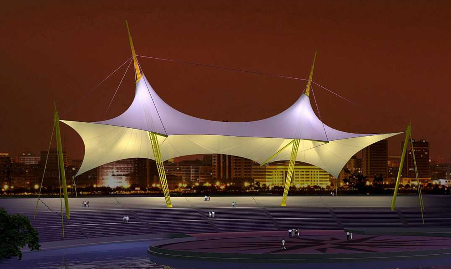 膜結構由于其材料重量輕、支撐方式靈活的特點使其形狀變化多端,使設計者能夠充分發揮空間想象。大部分膜結構工程的造型是非常活潑漂亮的,膜結構工程不但打破了傳統建筑形式的沉悶,而且非常具有張力和雕塑感,能展現建筑形式的現代氣息,與傳統建筑的多線造型相比,膜結構工程建筑以其優美的曲線造型吸引人,與周邊建筑相輔相成的同時也讓人眼前一亮。特別是大型地標利用奇特的膜結構造型營造夢幻般的夜間景觀效果,增加其認知度和商業效果。